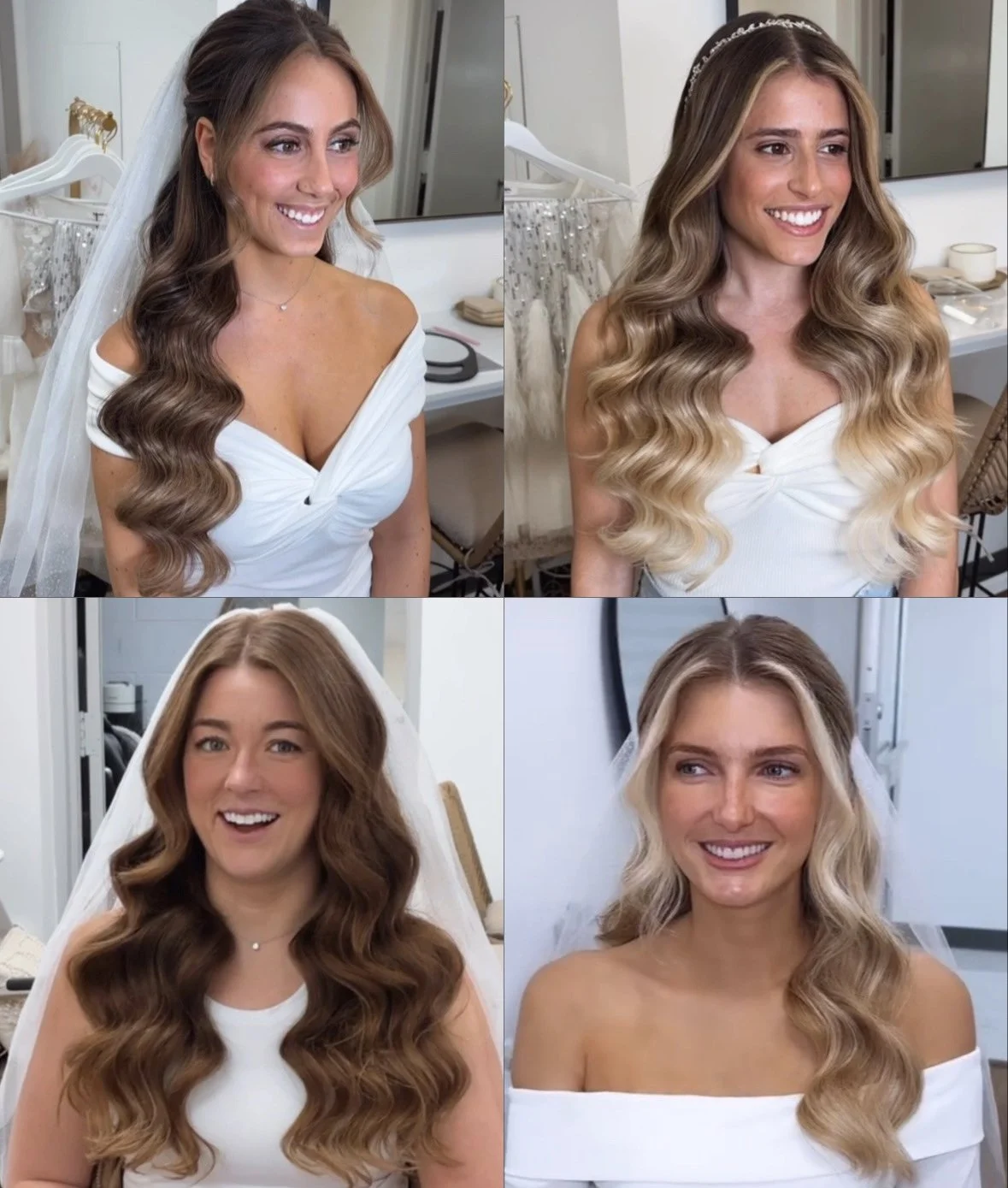 Explore real wedding hairstyles by Ashley Glazer- from Hollywood waves to boho braids.