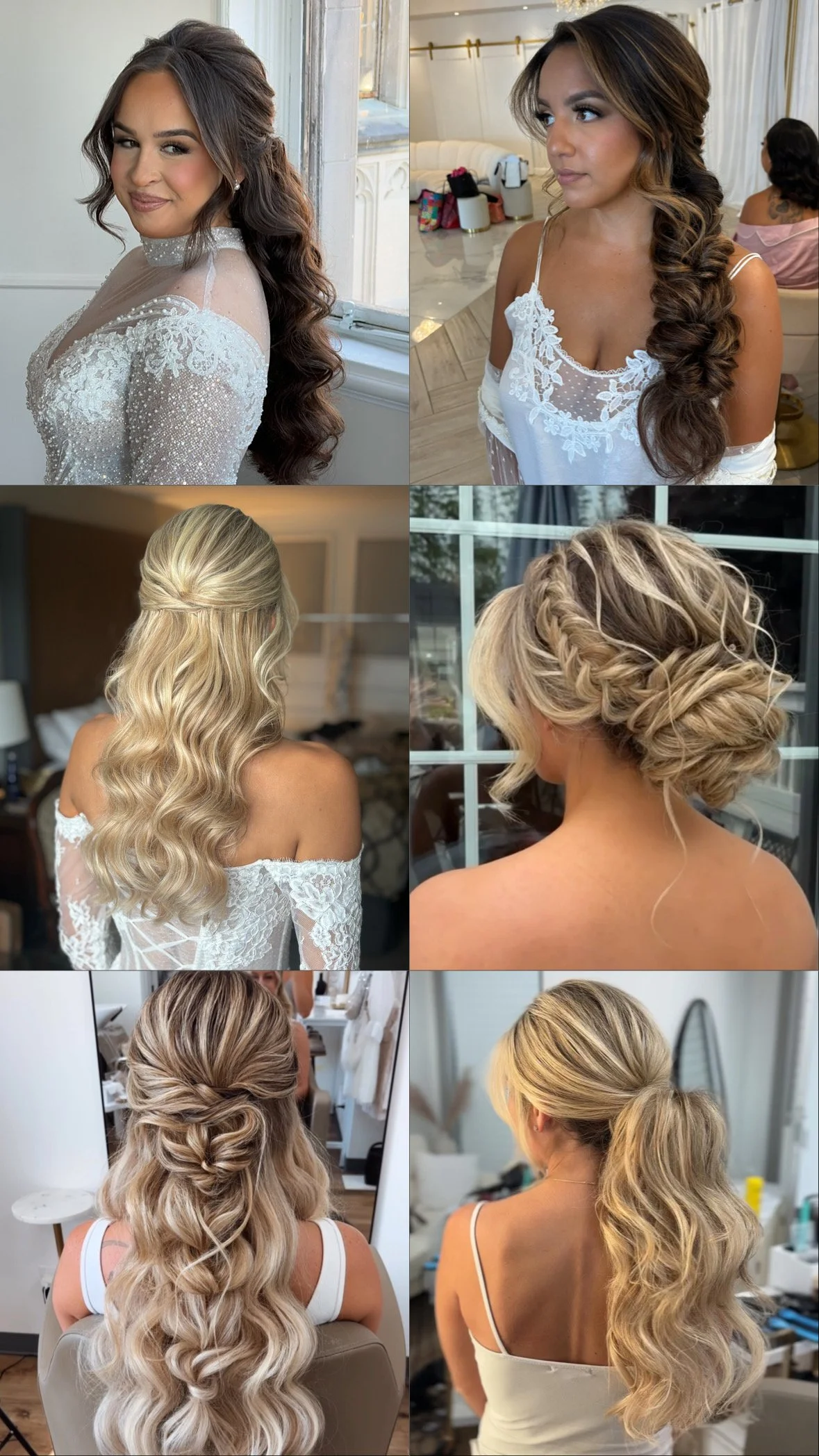 Explore real wedding hairstyles by Ashley Glazer- from Hollywood waves to boho braids.